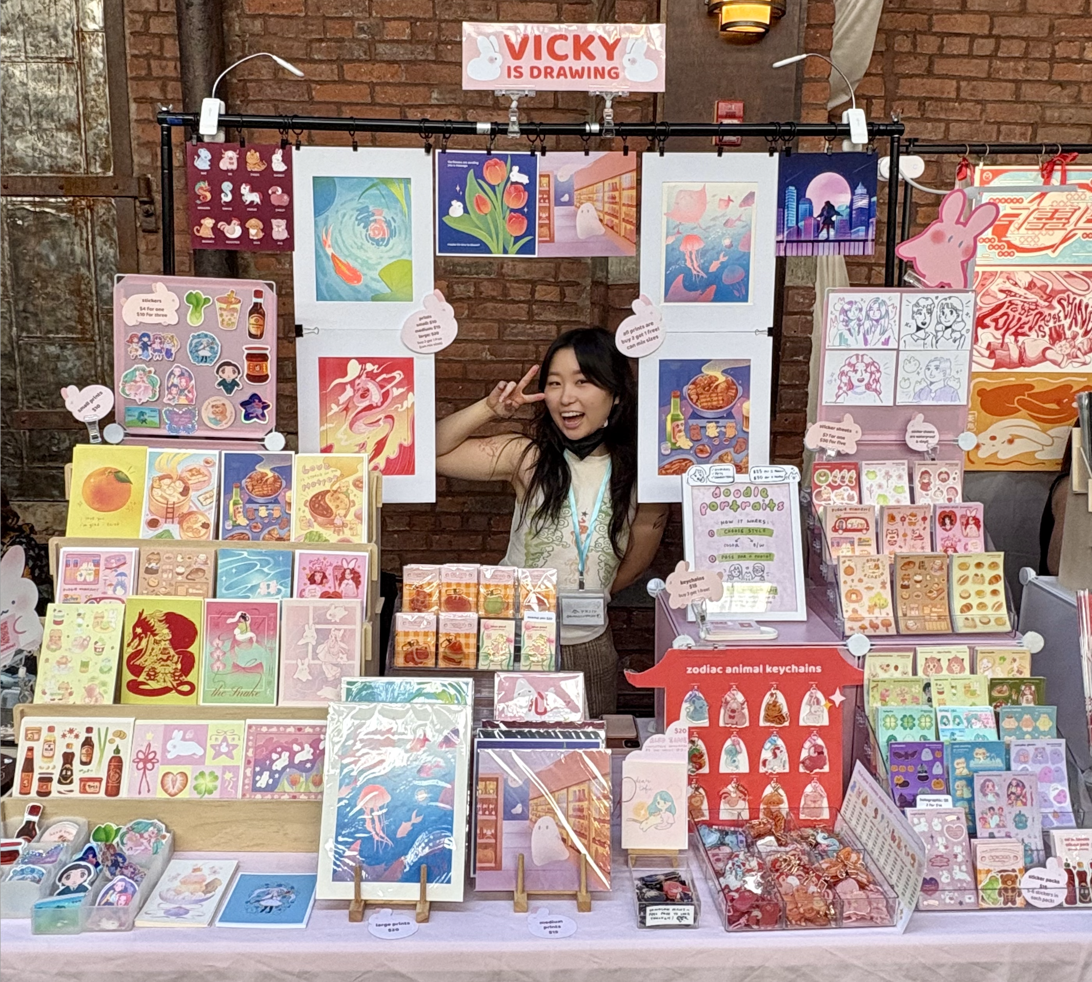 Hi, I’m Vicky! I’m an artist who specializes in cute and nostalgic stationery, risograph art prints, accessories, and live drawing.